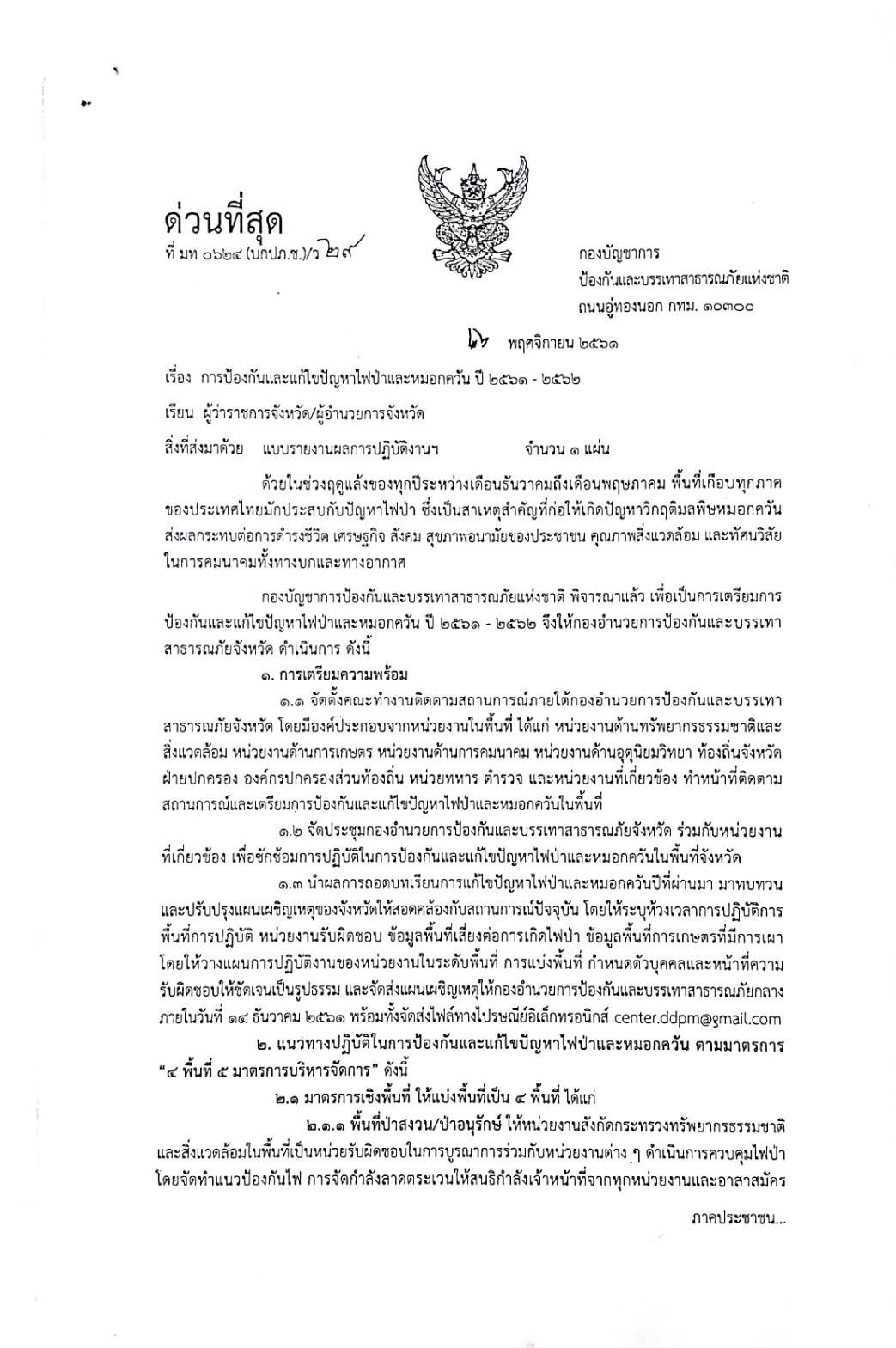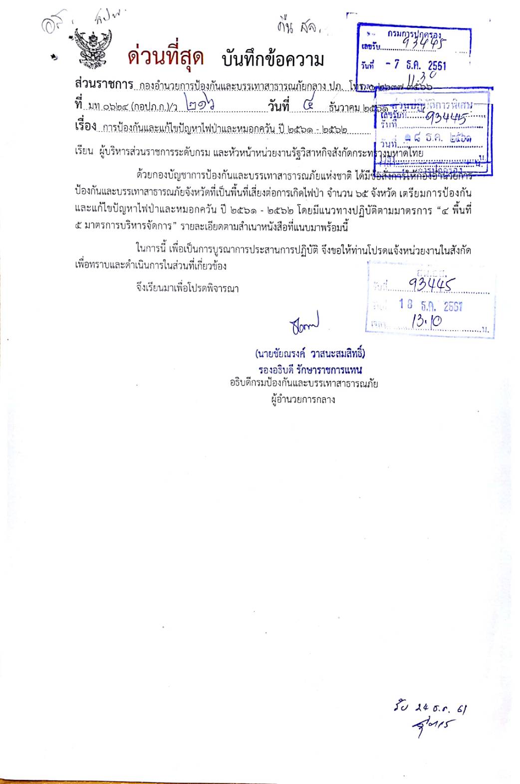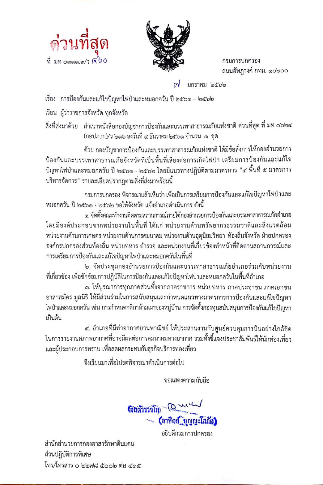 มท 00311.3/860 การป้องกันและแก้ไขปัญหาไฟป่าและหมอกควัน ปี 2561-2562