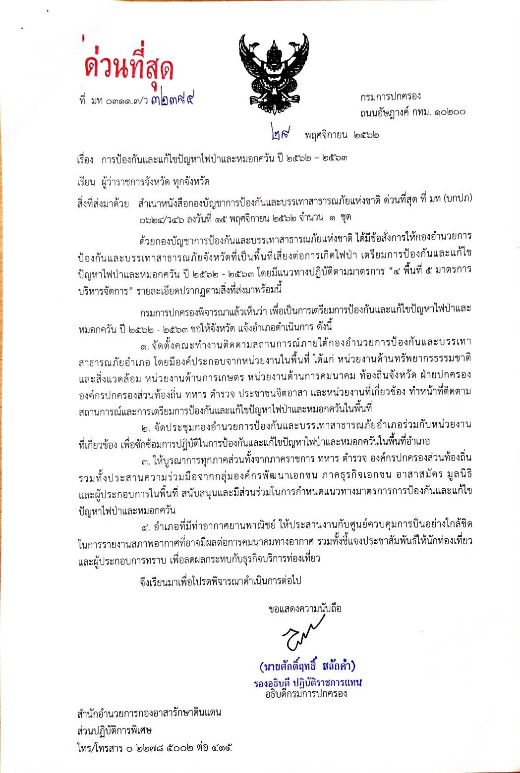 การป้องกันและแก้ไขปัญหาไฟป่าและหมอกควันในปี 2562 - 2563