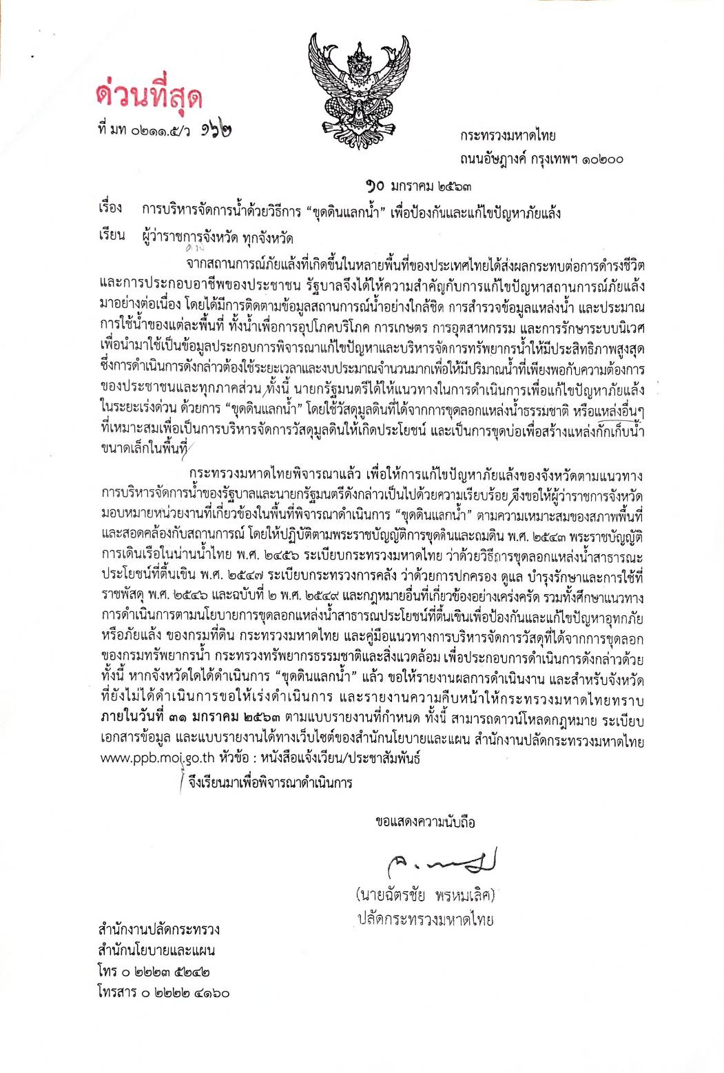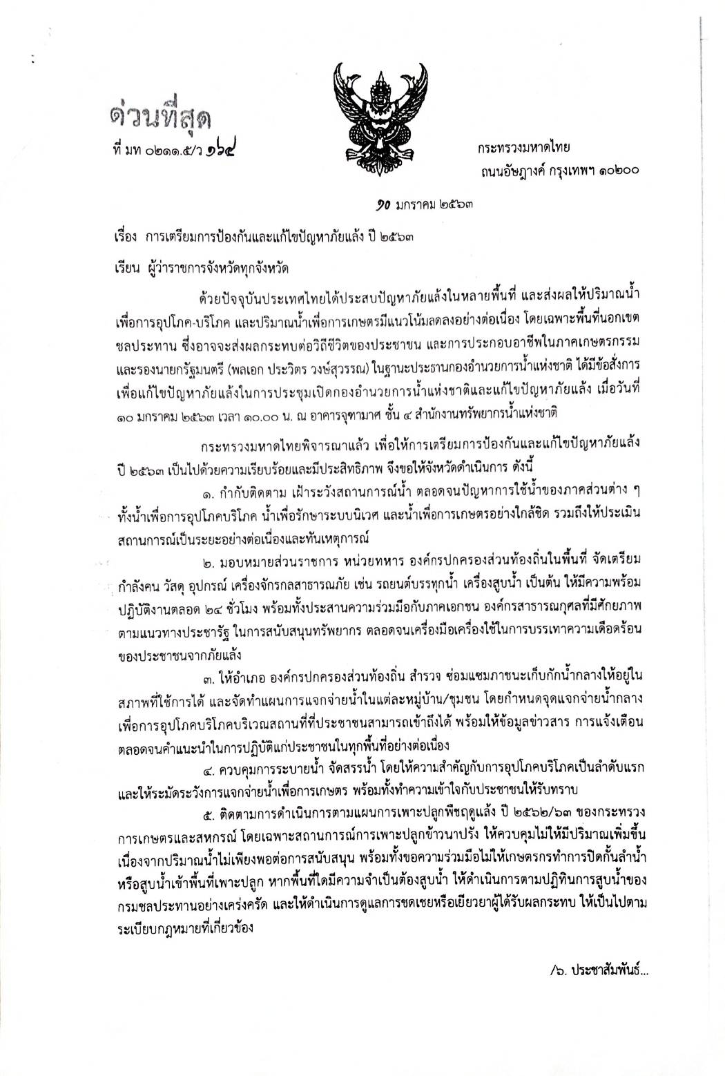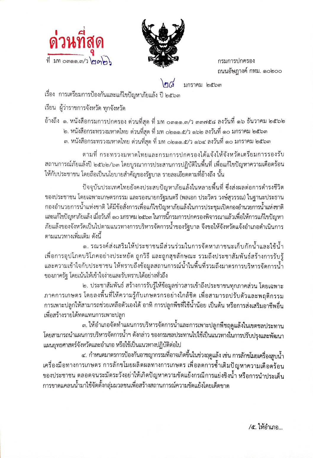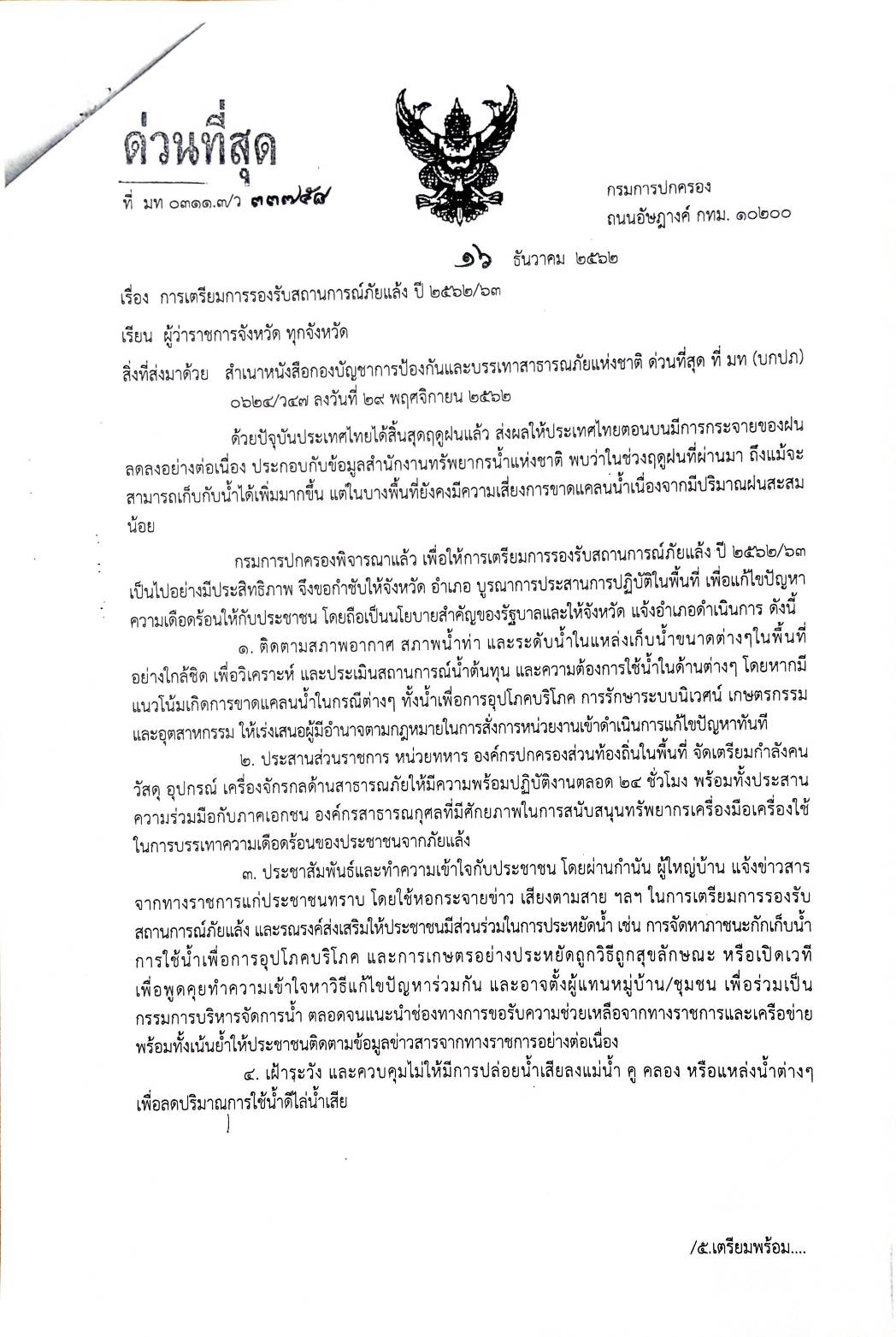 0311.3/ว 2326 การเตรียมการป้องกันและแก้ไขปัญหาภัยแล้ง ปี 2563