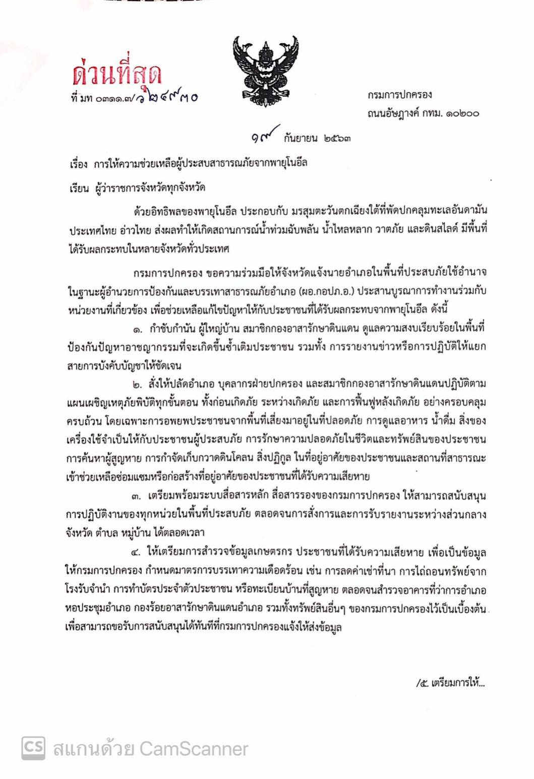 0311.3/ว 24930 การให้ความช่วยเหลือผู้ประสบสาธารณภัย