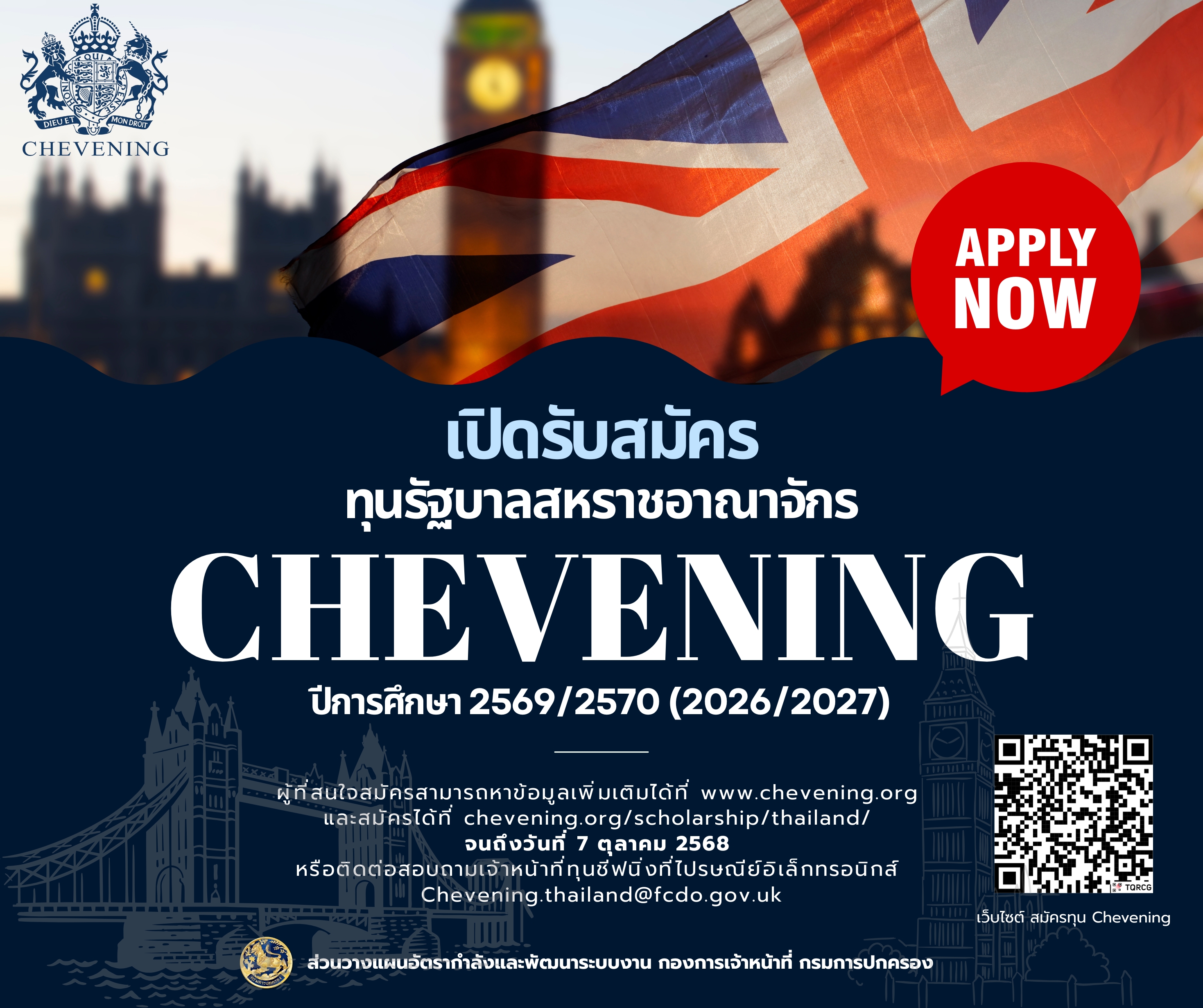 ทุนการศึกษาชีฟนิ่งจากรัฐบาลสหราชอาณาจักร ปีการศึกษา 2569/25670 (2026/2027)