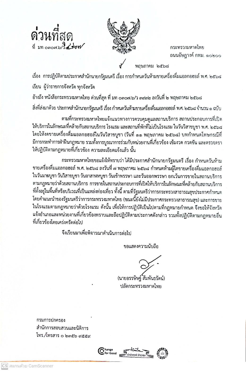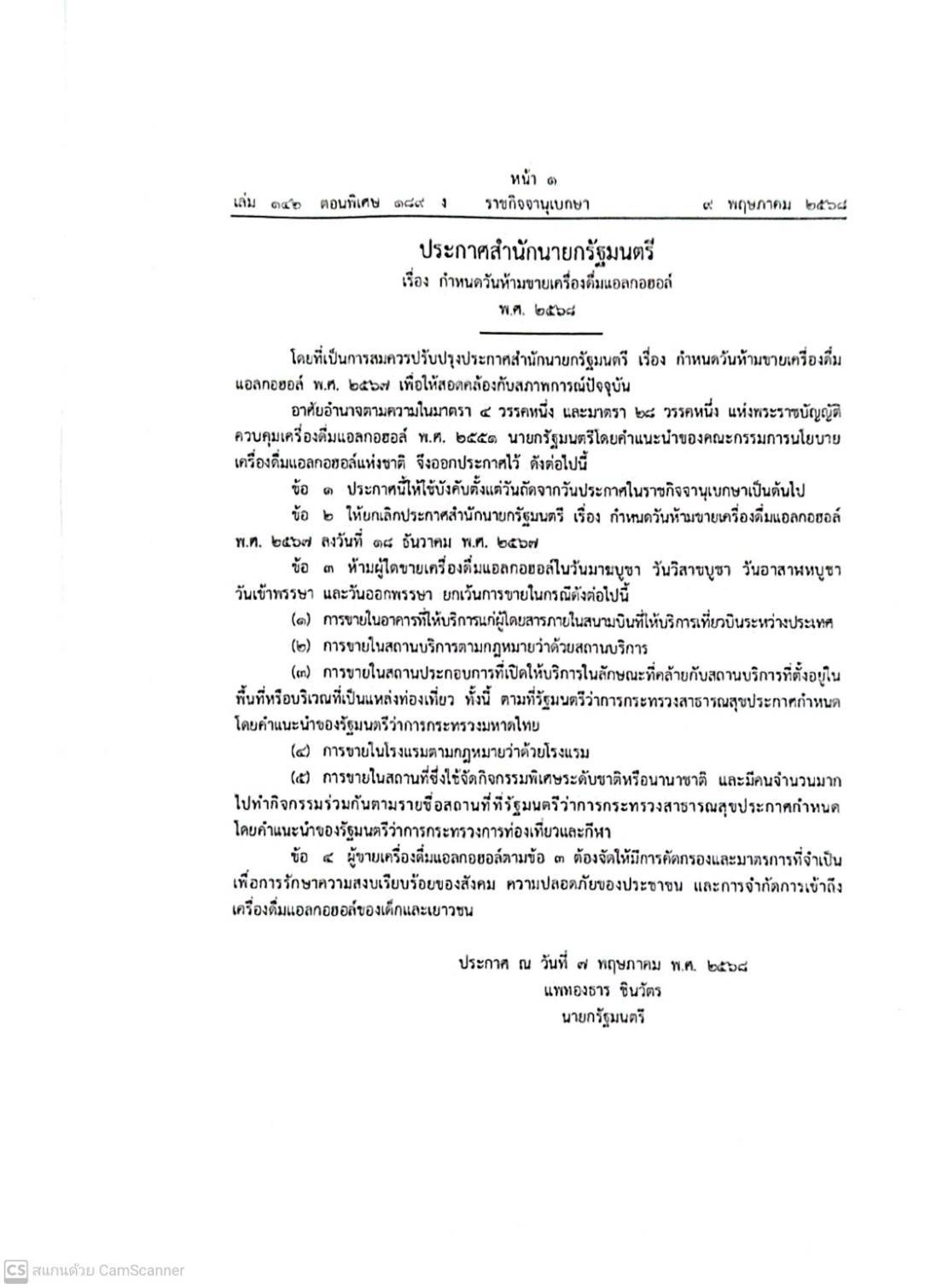 การปฏิบัติตามประกาศสำนักนายกรัฐมนตรี เรื่อง การกำหนดวันห้ามขายเครื่องดื่มแอลกอฮอล์ พ.ศ. 2568