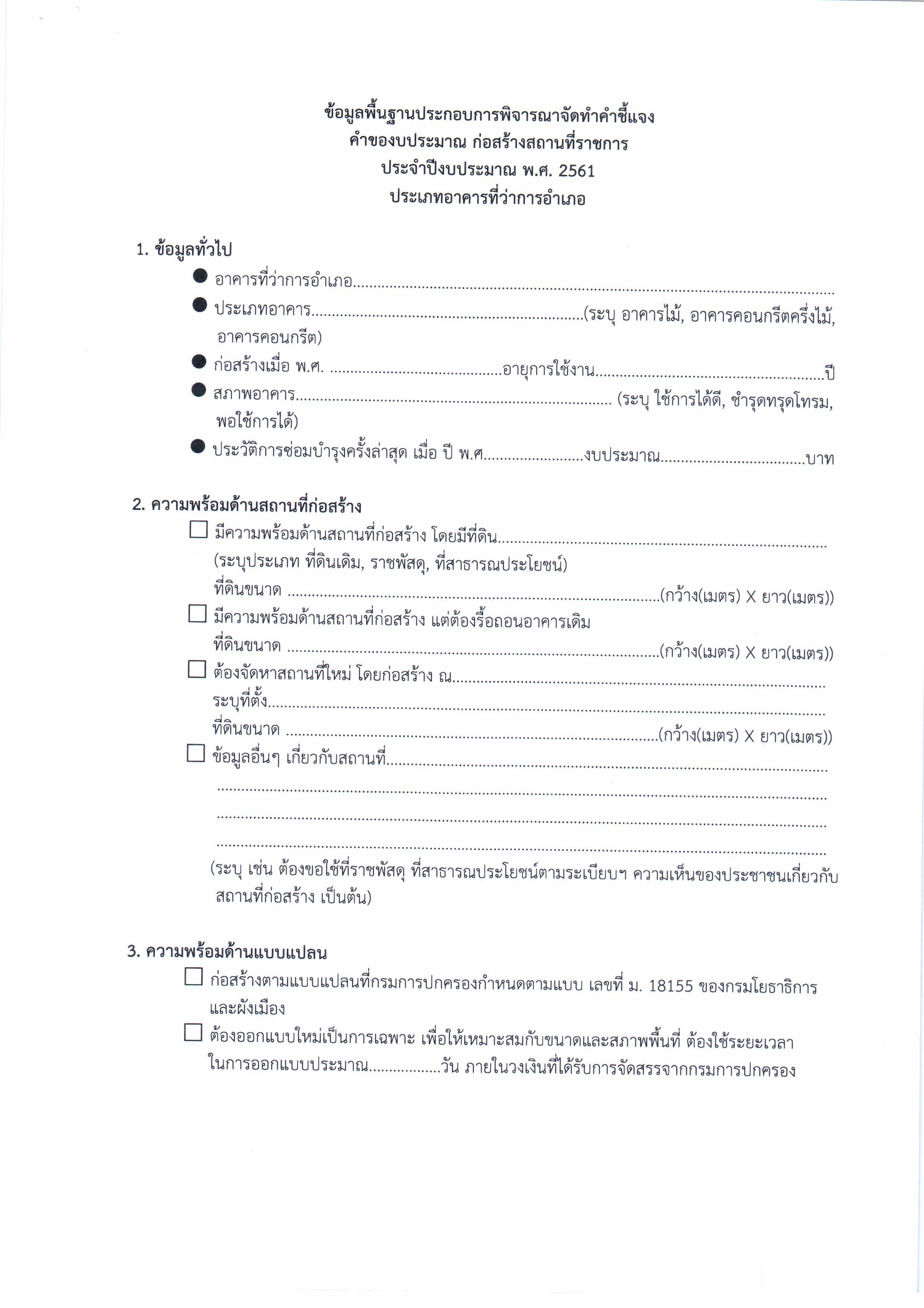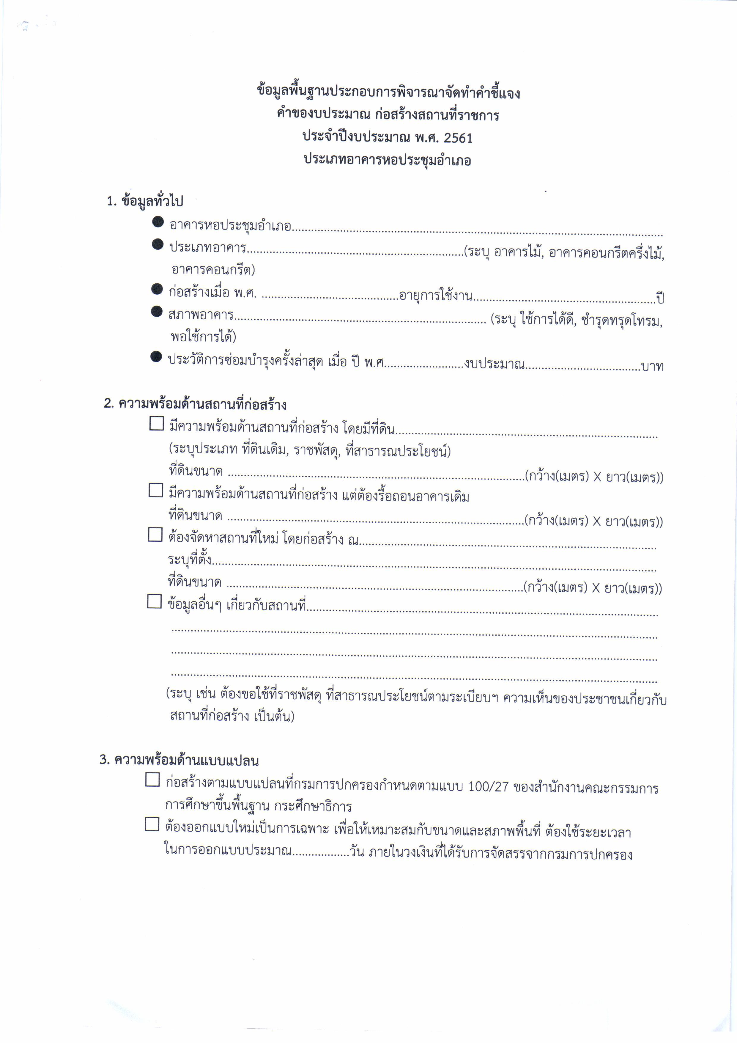 เตรียมความพร้อมการก่อสร้างอาคารที่ว่าการอำเภอ หอประชุมอำเภอ และบ้านพักข้าราชการ ประจำปีงบประมาณ พ.ศ. 2561