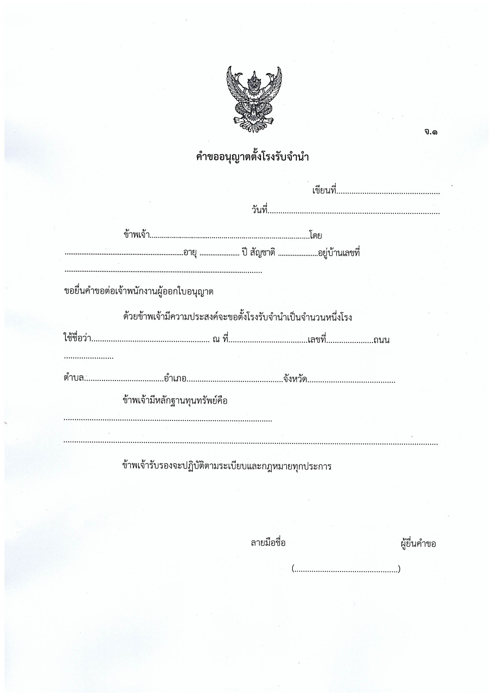 (คำขออนุญาตตั้ง งานโรงรับจำนำ)