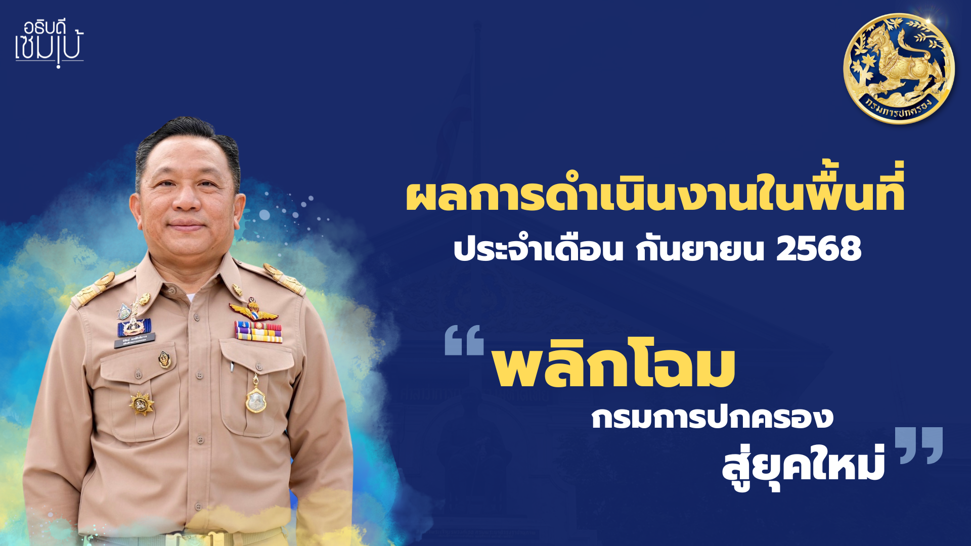 สรุปผลการดำเนินงานตามแนวทางการขับเคลื่อนกรมการปกครอง ประจำปีงบประมาณ พ.ศ. 2568 “DOPA NEXT” พลิกโฉม DOPA สู่ยุคใหม่ ไร้ทุกข์ สร้างสุข ทำงานเชิงรุก อย่างสร้างสรรค์ ในระดับพื้นที่“ ประจำเดือนกันยายน พ.ศ. 2568
